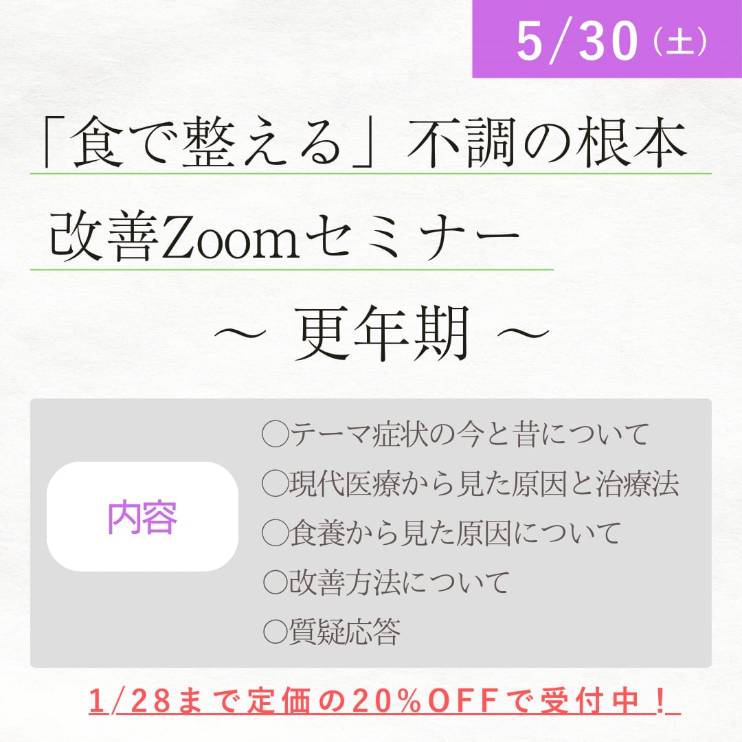不調別に原因や改善方法などを学んでいただくZoomセミナーになります。